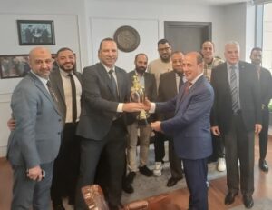 نصار يكرم فريق كرة القدم بالجهاز المركزي للتعمير بعد فوزه بالدورة الرمضانيه للعاملين بالاسكان