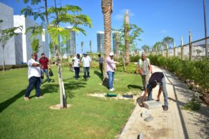 أعلن الدكتور مهندس محمد خلف الله رئيس جهاز مدينة العلمين الجديدة والمشرف علي جهاز القرى السياحية، عن إنطلاق حملة موسعة شملت عددًا من المحاور والمداخل الحيوية بالمدينة، شارك في الحملة المهندس محمد خليل نائب رئيس الجهاز للتنمية، والمهندس ماجد بغدادي مدير إدارة الزراعة، ورؤساء الأحياء، ومديرى الإدارات المعنيةبالجهاز.
