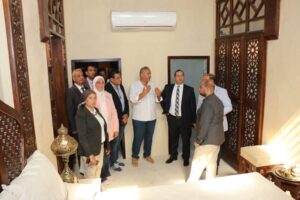 وخلال الجولة، استمع سيادته إلى شرح تفصيلي لمراحل تنفيذ الأعمال بالمبني الأثري وملحقاته وعن التحديات التي واجهها المشروع وكما تم توضيح الدور الفعال للسيد اللواء د. مهندس/ مدحت عبدالرحمن رئيس الجهاز في تذليل الصعاب ودفع العمل بالمشروع، الذي أوشك على الانتهاء، حيث تم الانتهاء من أعمال الترميم الدقيقة للواجهات والأرضيات والأسقف الخشبية، مع الحفاظ على الطابع العمراني والمعماري الأصيل للمبنى الذي يرجع تاريخ إنشائه إلى عام (885هـ / 1480م)، والذي يعد أحد أروع نماذج العمارة المملوكية بالقاهرة التاريخية.
