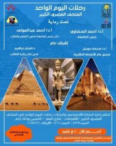 وتأتي هذه الرحلات ضمن خطة الجامعة لدعم الأنشطة الاجتماعية والثقافية لطلابها، وإتاحة الفرصة لهم لزيارة أهم المعالم التاريخية والحضارية في مصر، حيث تتضمن الجولة زيارة منطقة الأهرامات وشارع المعز ومنطقة الحسين وصولًا إلى المتحف المصري الكبير.