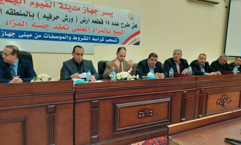 شهد اليوم جهاز تنمية مدينة الفيوم الجديدة جلسة مزاد علني لبيع عدد “١٥” قطعة أرض فضاء” بنشاط ورش حرفية لمختلف الانشطة ومنها ” نجارة – حدادة – تصليح سيارات – تشكيل معادن ….” بأنظمة تقسيط ميسرة ، حيث تميزت بموقع مميز بقلب المنطقة الصناعية الأولى بما يسهم في دعم الإستثمار والتنمية العمرانية وتلبية احتياجات السكان.