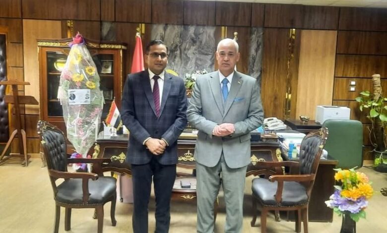 في مستهل اللقاء، رحّب الدكتور أحمد عبدالمولى بضيف الجامعة، مشيدًا بعمق العلاقات المصرية الهندية وما تشهده من تعاون مثمر في المجالات العلمية والثقافية، مؤكداً حرص الجامعة على دعم الطلاب الوافدين بصفة عامة، والطلاب الهنود على وجه الخصوص، من خلال توفير مختلف سبل الرعاية الأكاديمية والمعيشية، وتسهيل اندماجهم داخل المجتمع الجامعي عبر الأنشطة الطلابية والعلمية، بما يضمن لهم بيئة تعليمية مستقرة ومحفزة على التفوق.