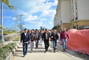 رافقه خلالها المهندس محمود فوزي بالإدارة المركزية للإنشاءات بالهيئة، والدكتور مهندس محمد خلف الله رئيس جهاز مدينة العلمين الجديدة والمشرف على جهاز القرى السياحية، والمهندس عصام الشيخ نائب رئيس الجهاز، والمهندس علي إبراهيم مدير تنفيذ الحي اللاتيني، والمهندس صالح محمد مدير تنفيذ مشروع سكن لكل المصريين، والعميد أحمد شهبة مدير عام الأمن، إلى جانب إستشارى المشروع ومديري الإدارات المعنية وممثلي الشركات المنفذة للأعمال.