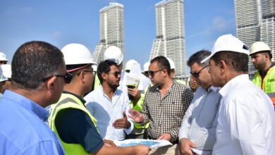 رئيس جهاز مدينة العلمين الجديدة يتفقد مشروع بحيرات الداون تاون وكوبري تقاطع طريق C19